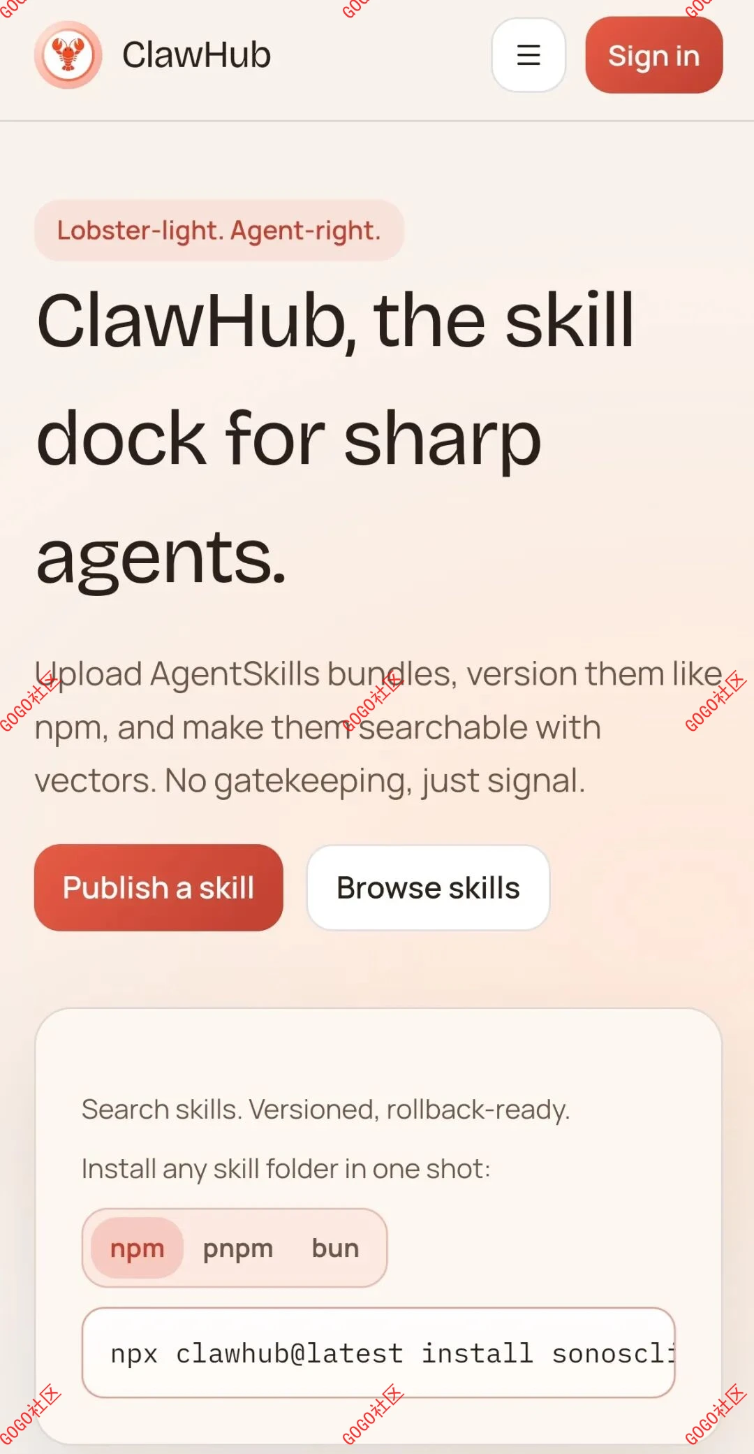 ▲ClawHub上集合了开发者制作的超两万个技能包。 图/ClawHub官网截图