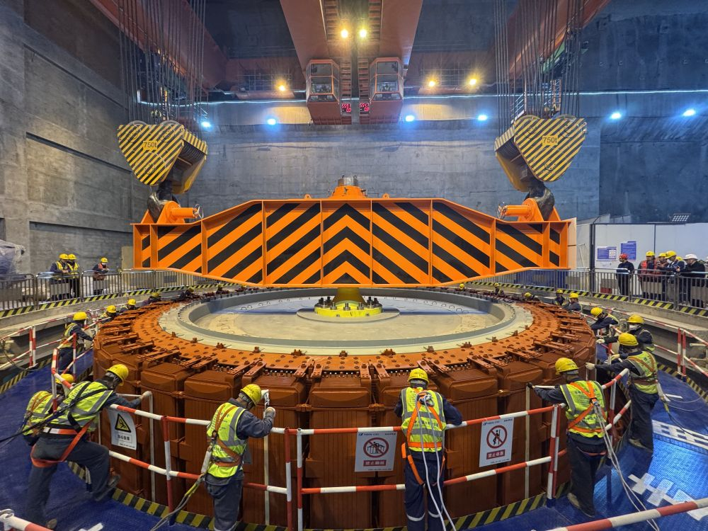 11日,华电金上拉哇水电站首台(4号)机组转子顺利完成吊装,标志着机组进入总装冲刺阶段。